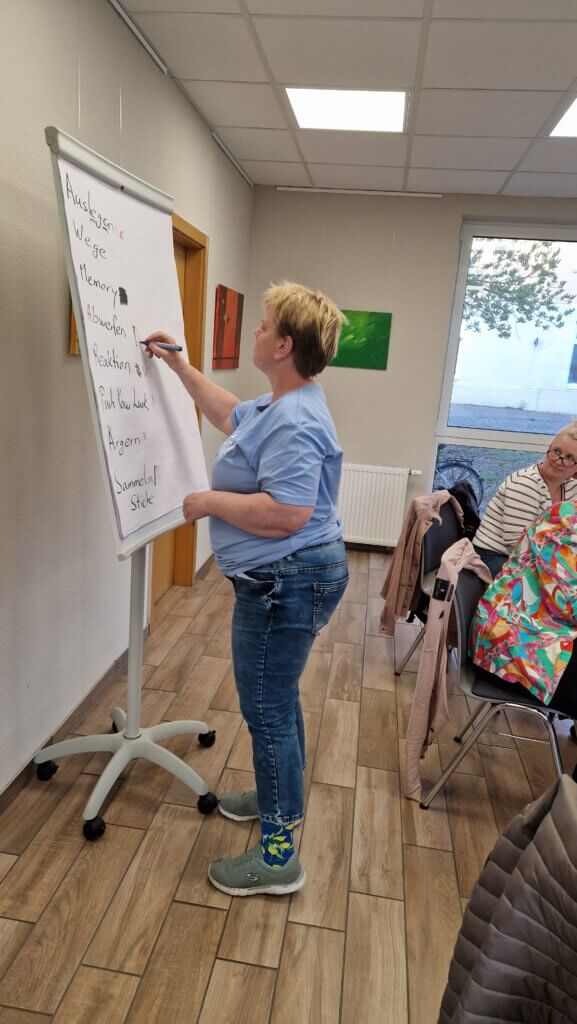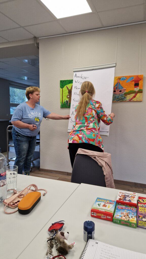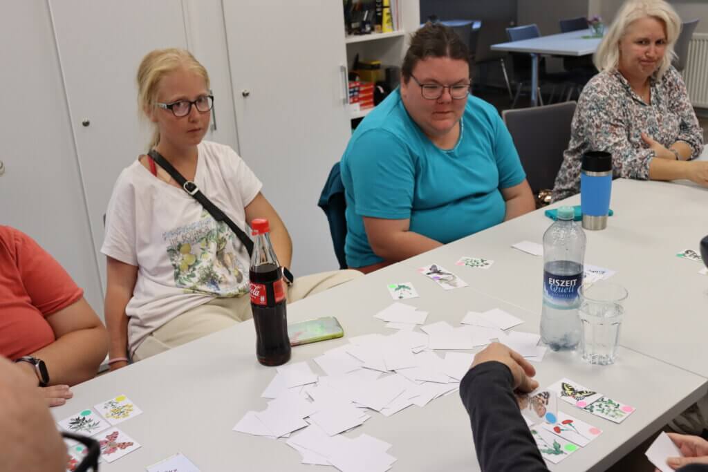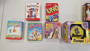 Nach einer kurzen Vorstellungsrunde in der jeder seine Lieblingsspiele genannt hat, z.Bsp. Kniffel, Uno, Memory und L.A.M.A., haben wir zum Einstieg eine Runde Uno gespielt. Das Spiel war allen vertraut und wurde mit großem Ehrgeiz und Begeisterung gespielt. Ziel dieses Spiels ist es als erster seine Kartenhand abzuwerfen.