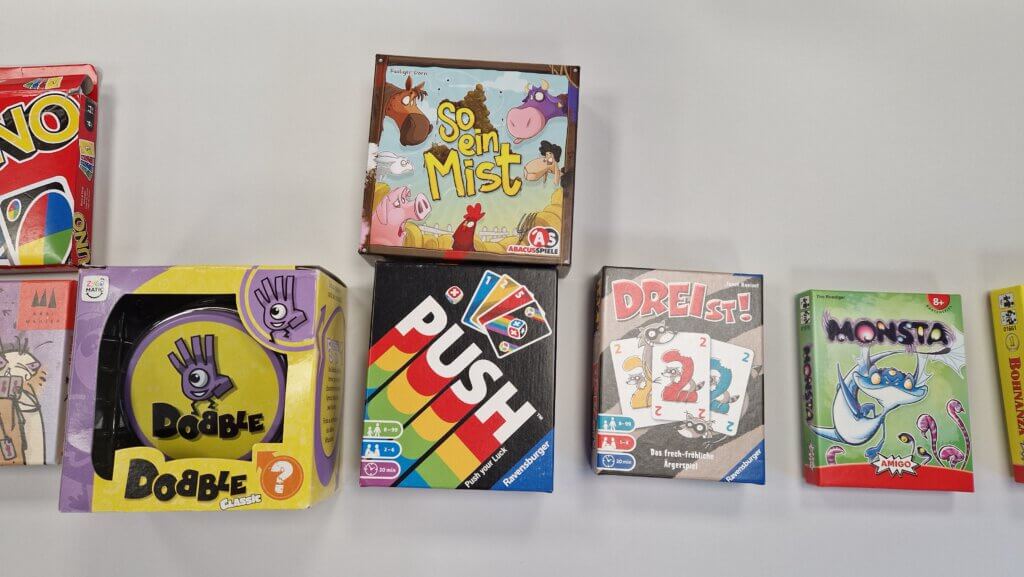Heute haben wir Würfelspiele gezockt. Natürlich durfte hier „HeckMeck“ nicht fehlen. Die Gruppe kennt hier wirklich kein Pardon. Hier werden Würmer von den Mitspielern geklaut bis zum abwinken.