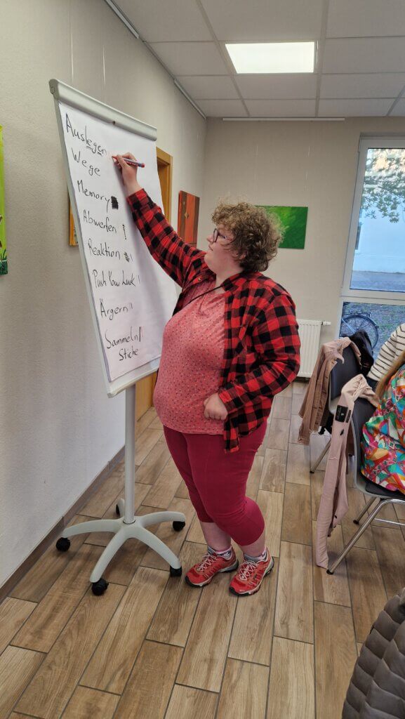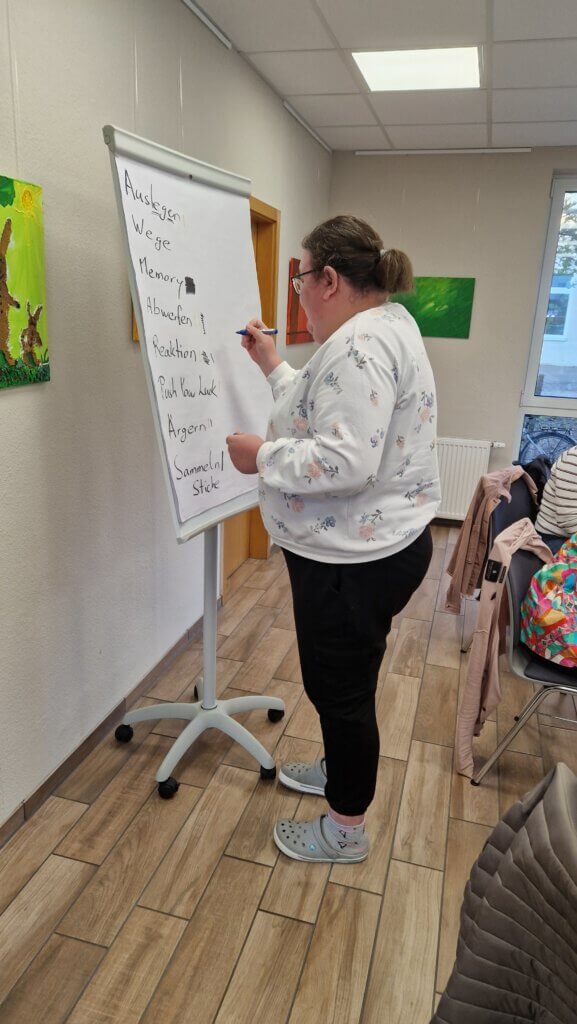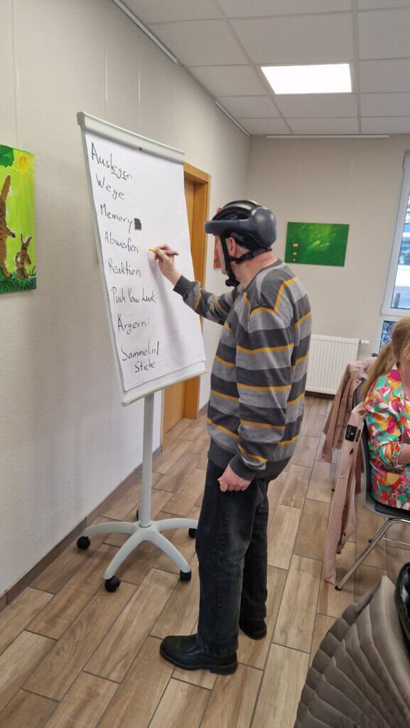 Leider musste die Spieleentwicklung heute schon wieder ruhen. Wir mussten Ideen für den Auftritt bei der Verleihung des Inklusionspreises sammeln und unseren Auftritt proben.