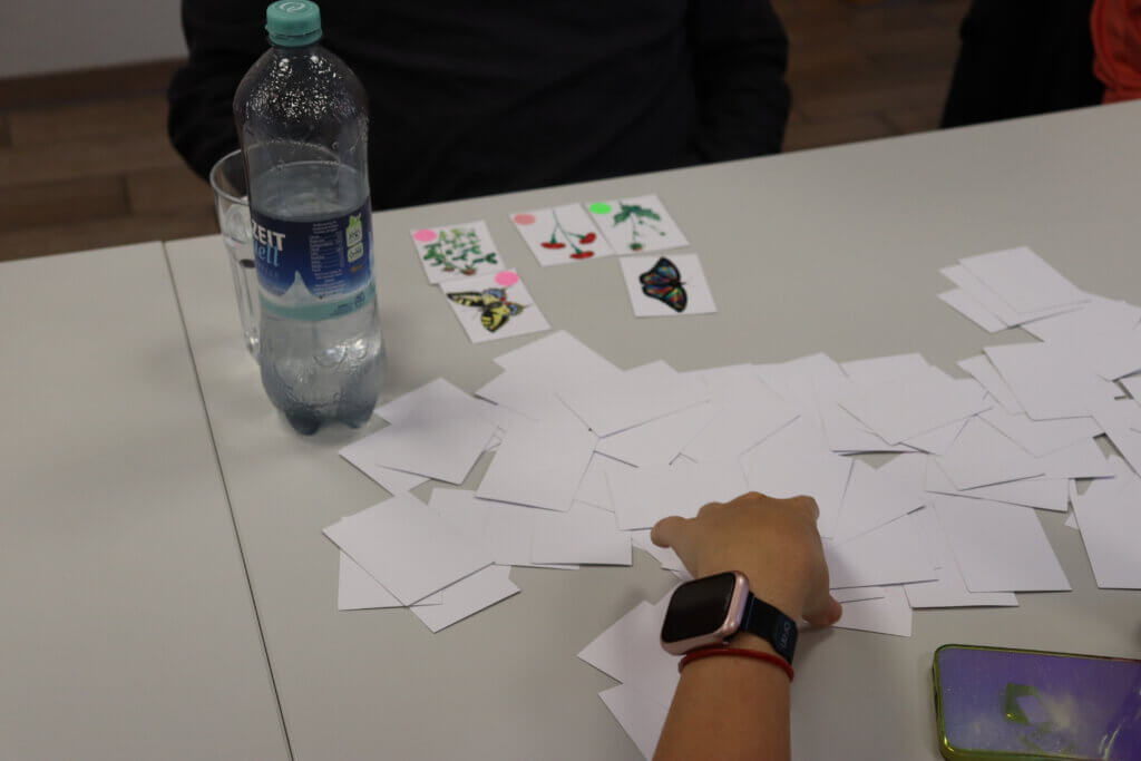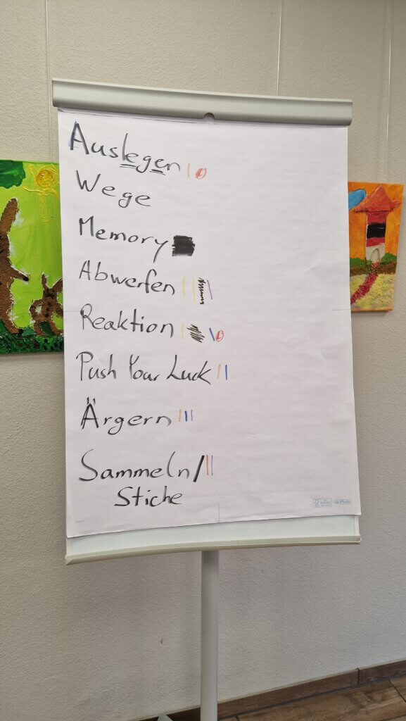 Es begann mit dem Kennenlernen von verschiedenen Kartenspielen. Danach hat die Gruppe abgestimmt welche Spielemechanismen Sie einsetzen wollen.