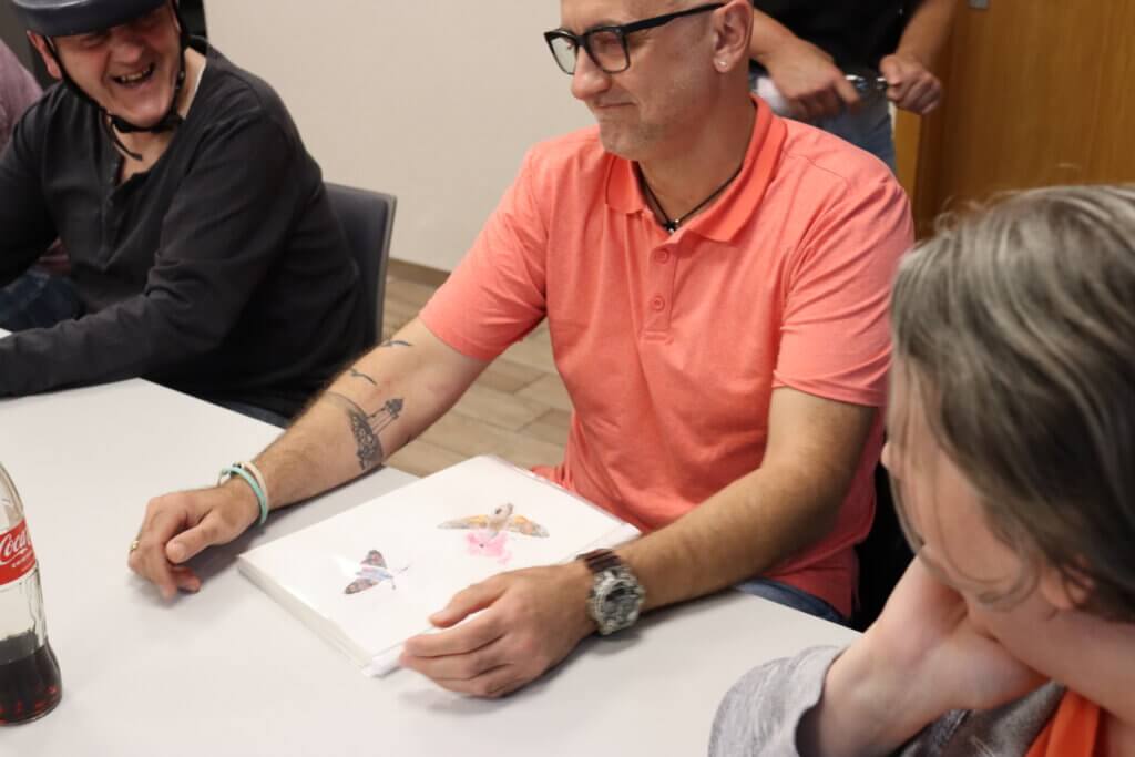 Am 13.04.2023 ging es nach der Besichtigung sehr spannend weiter. Ein Filmteam erwartete uns bereits bei unserer Rückkehr. Das Team von MEDIA & MORE Reutlingen hat Aufnahme für einen Film im Rahmen der Preisverleihung des Inklusionspreises Reutlingen gemacht. Frau Susanne Blum Leitung Geschäftsstelle Inklusionskonferenz hat uns zu diesem Anlaß besucht.